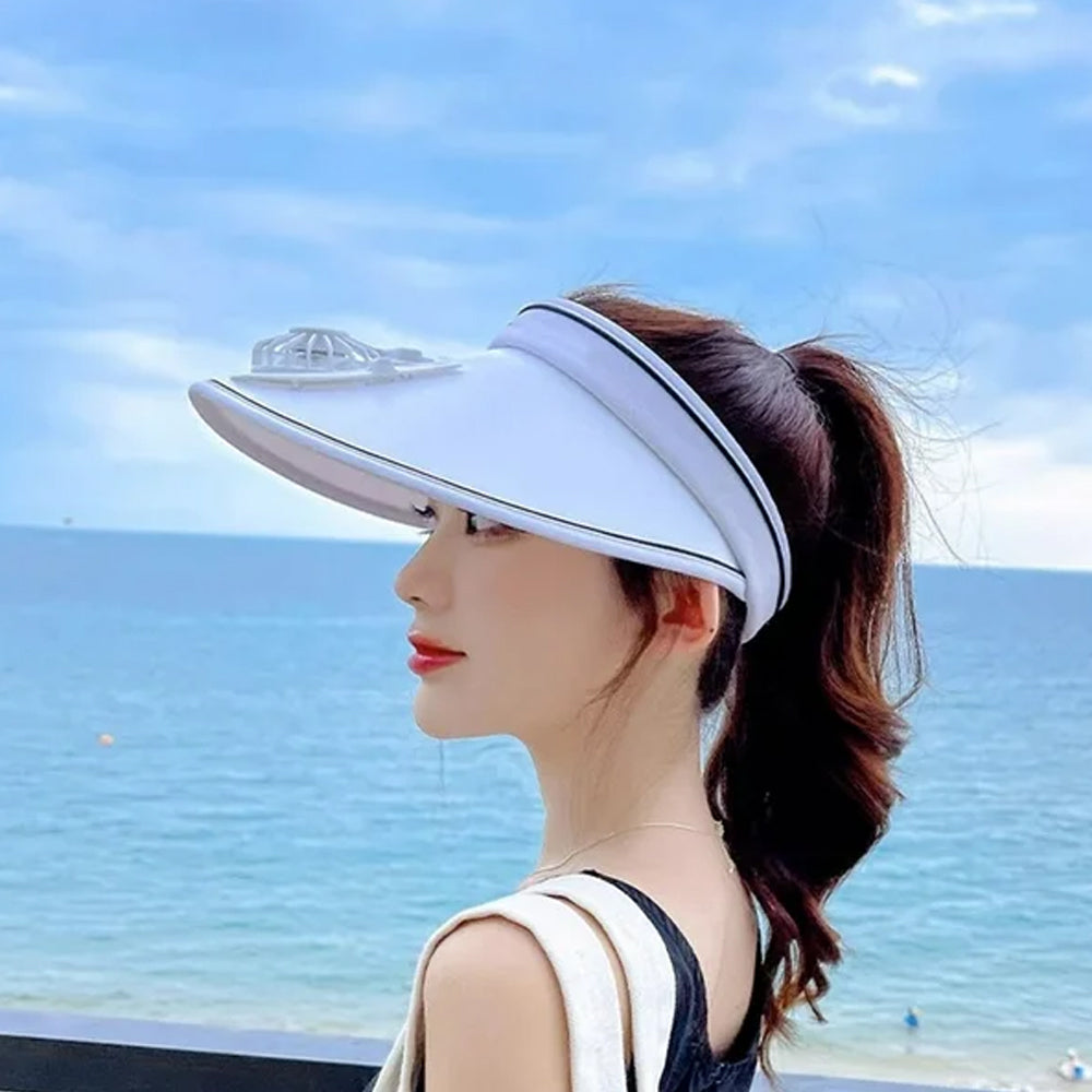 - Sombrero de visera con ventilador: Se ajusta, no apretado y estable y no se cae.